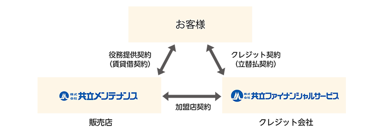 契約成立後、分割払いの初回支払い時に「館費分割払い制度支払表」と「契約に関する注意事項」を㈱共立ファイナンシャルサービスよりお送りします。